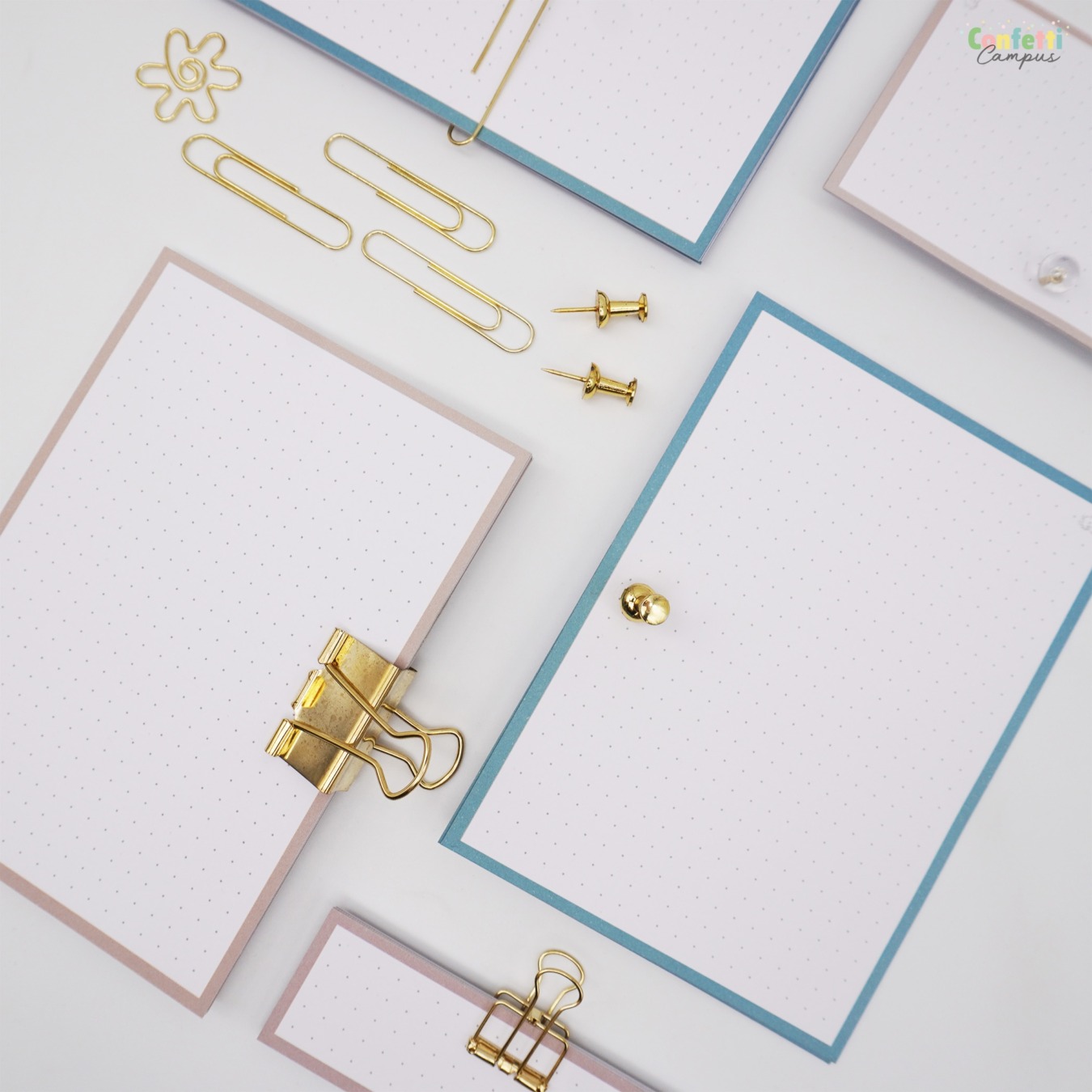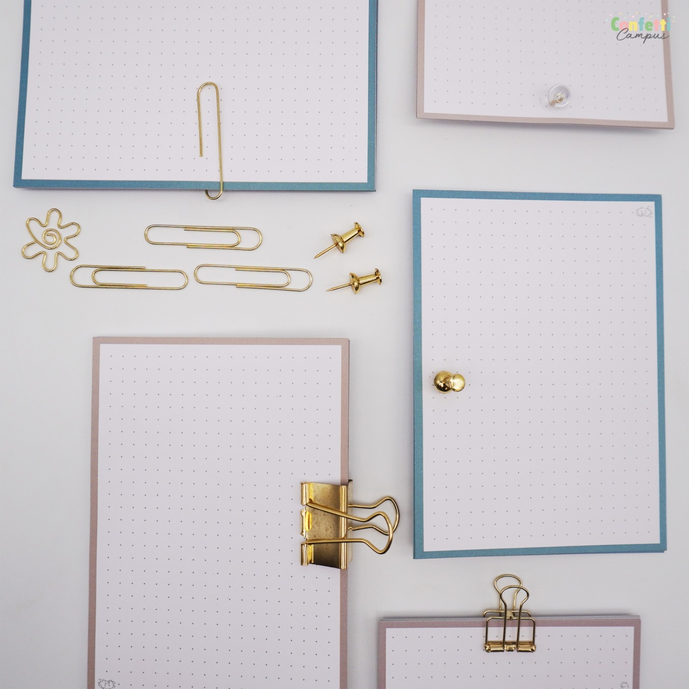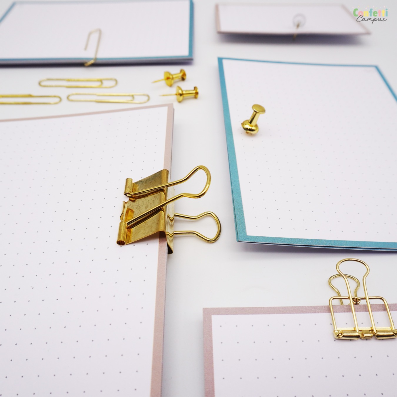 Set van 36 goudkleurige paperclips, pins, klemmetjes en magneten in verschillende ontwerpen. Verpakt in een stevig plastic doosje met deksel en 8 vakken.