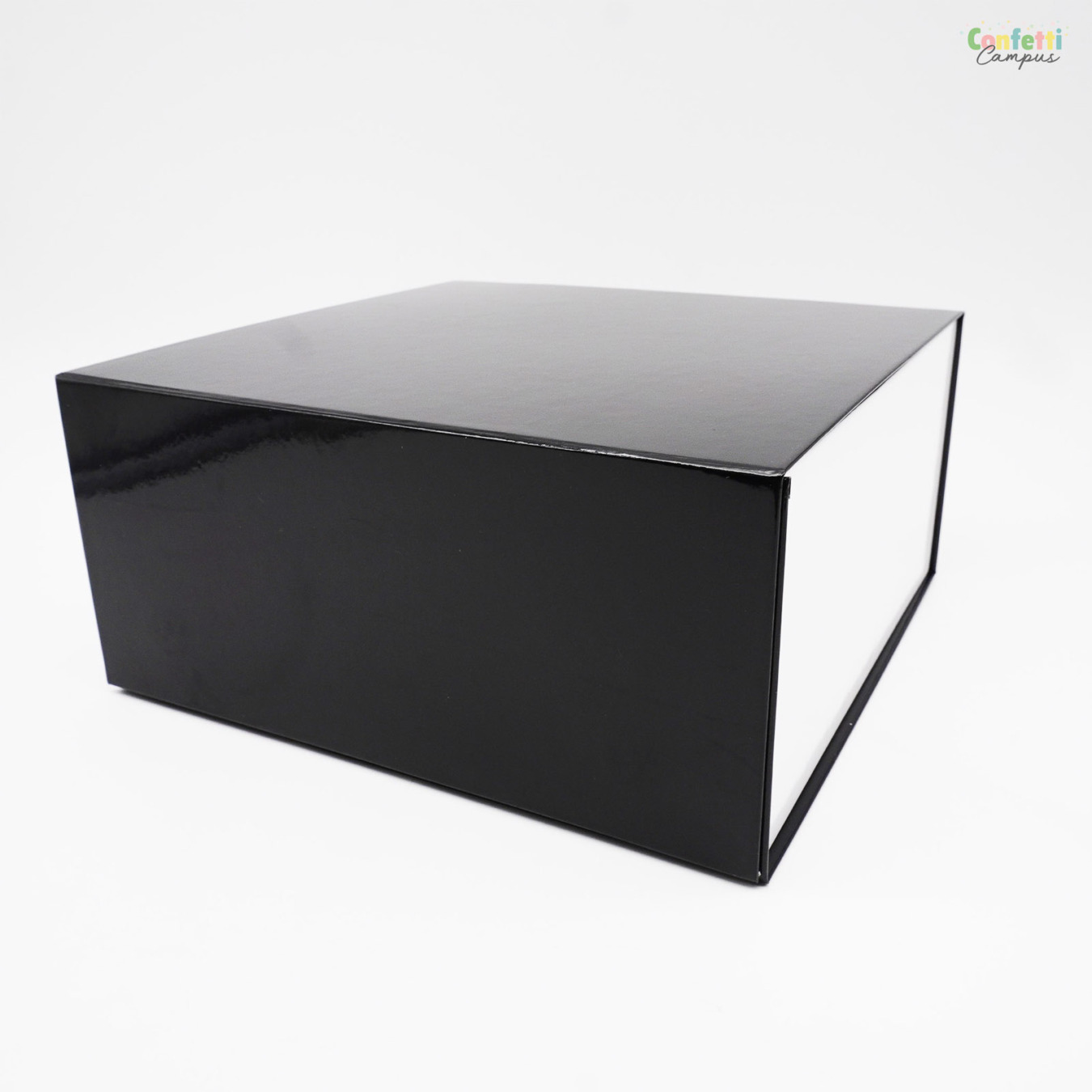 Lege zwart-witte cadeaudoos of luxe geschenkdoos, formaat 23cm X 23cm X 11cm (lxbxh). Ideaal om te gebruiken als cadeaudoos, of als luxe geschenkverpakking. Erg geliefd als cadeauverpakking voor verjaardagen, tijdens de feestdagen én als gevulde cadeaudoos met strik als afstudeercadeau.