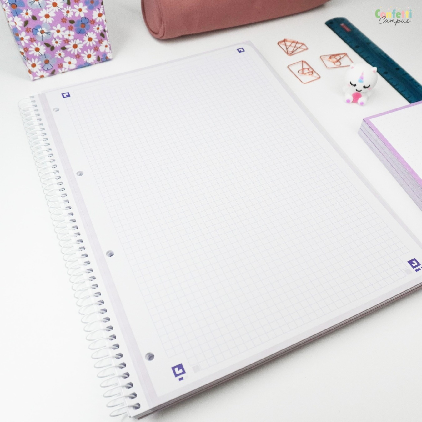 A4 spiraalnotitieboek met 80 vel ruitjespapier (5x5), OptikPaper® en Scribzee functionaliteit. Inclusief whiteboardpagina, stickervel en stevige kaft, kleur zacht roze.