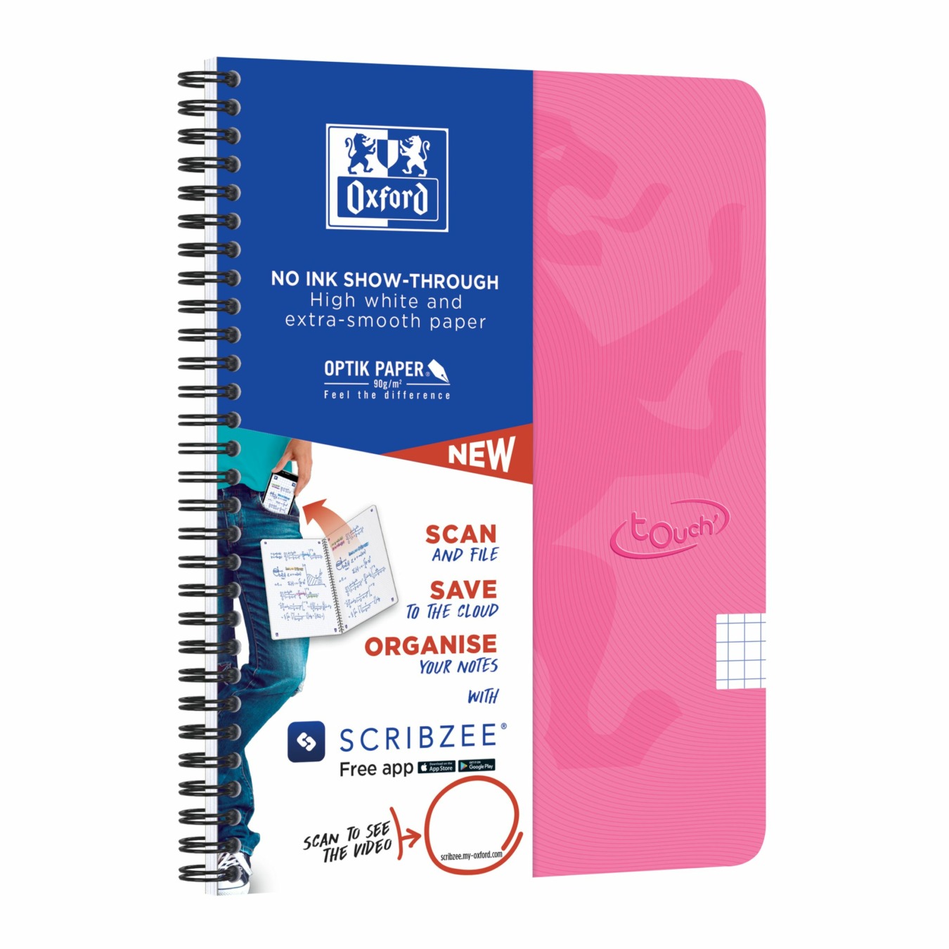 OXFORD Spiraalblok A5 Touch' geruit 5x5mm - roze. 140 bladzijdes