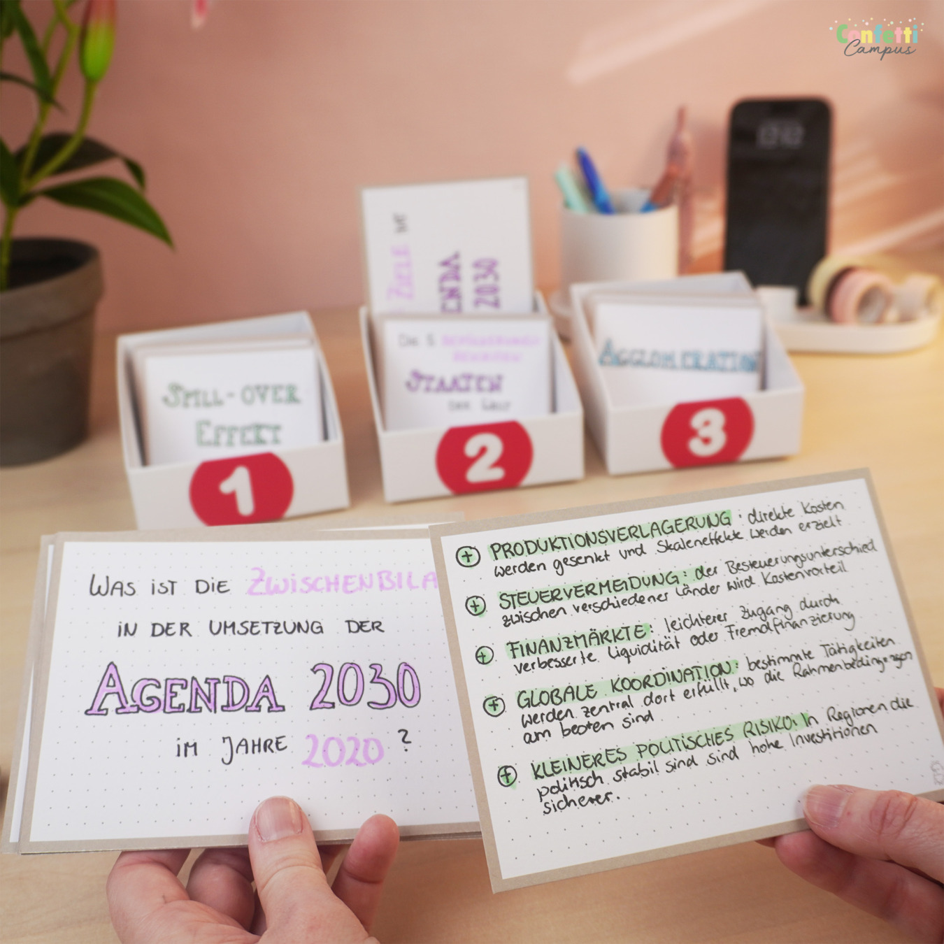 - Elk doosje heeft zijn eigen opdruk: 1, 2 en 3, inclusief uitleg, volgens het Leitner-systeem.