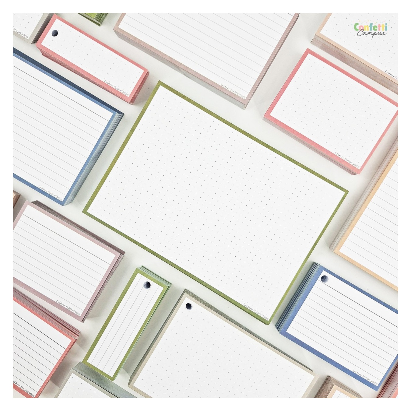 Olijfgroene A5 Leitner Flashcards® met stijlvolle groene rand, dotted. De kaarten zijn 15 x 21 cm groot en hebben een puntraster met grijze puntjes op 5 mm afstand.