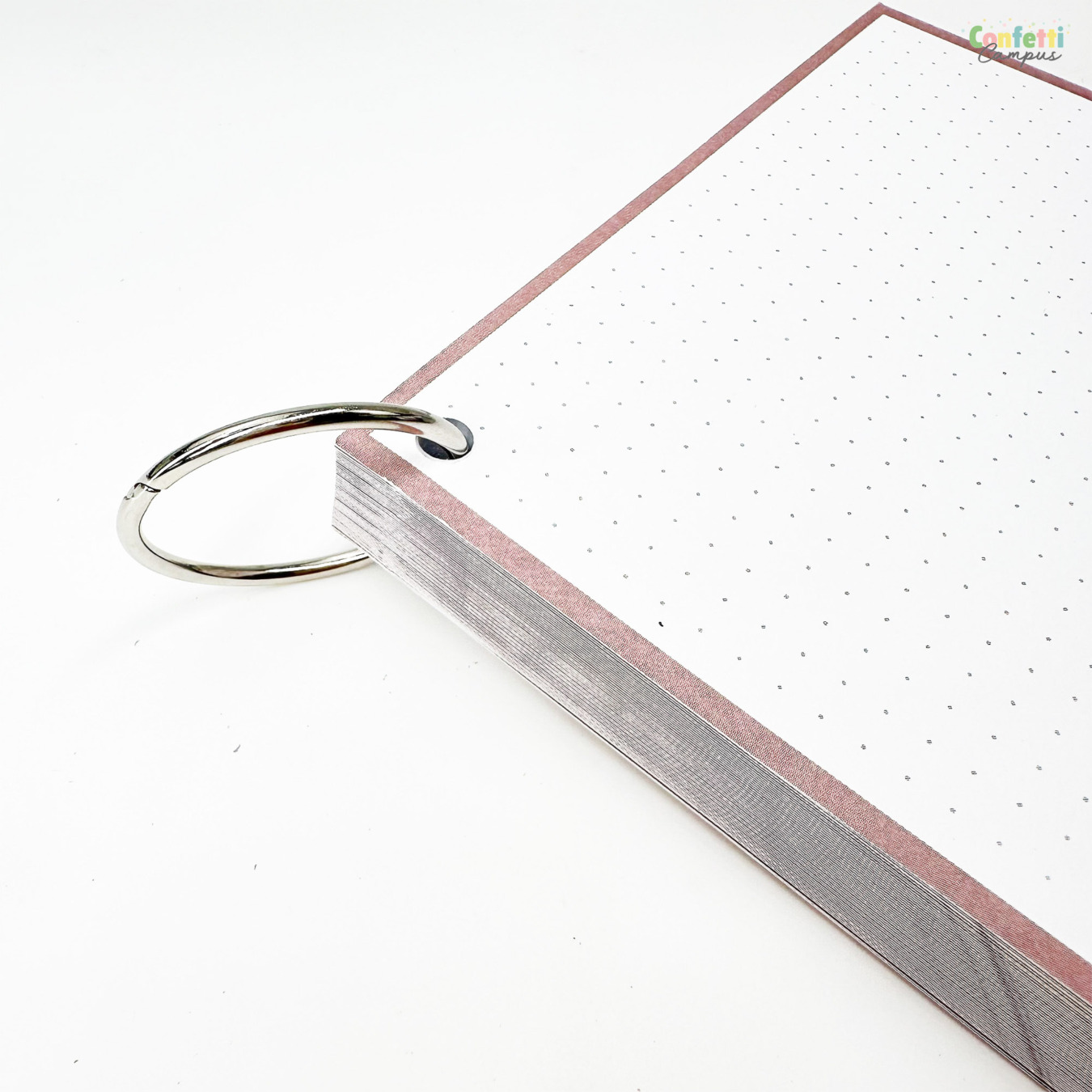 Optioneel: De A6 dotted flashcards kunnen geperforeerd worden. Dan boren we een gaatje linksbovenin de kaarten. Combineer dit met een handige klikring en houd de kaarten eenvoudig bij elkaar. Bundel ze per onderwerp, examen of vak. Je kunt ze ook in je tas stoppen en de flashcards meenemen om onderweg te studeren.