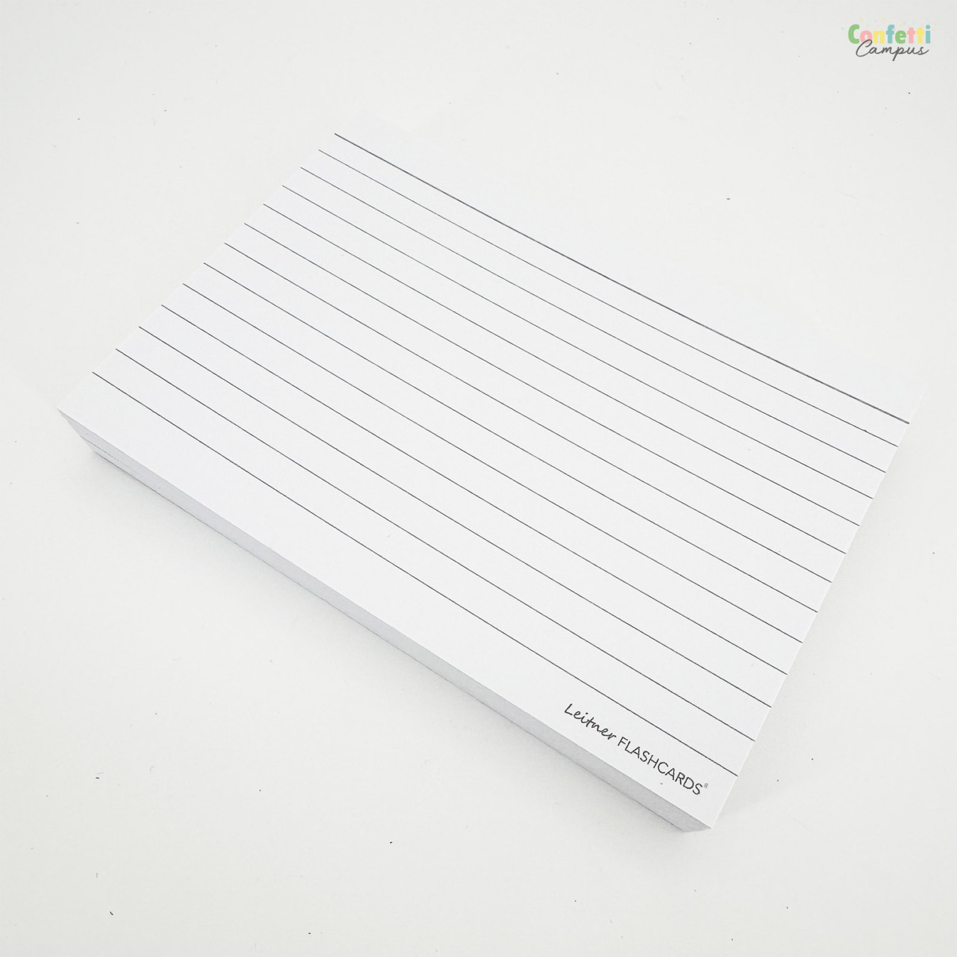 Witte Leitner Flashcards® in A6 formaat. De flashcards zijn wit en gelinieerd aan de voor- en achterkant.