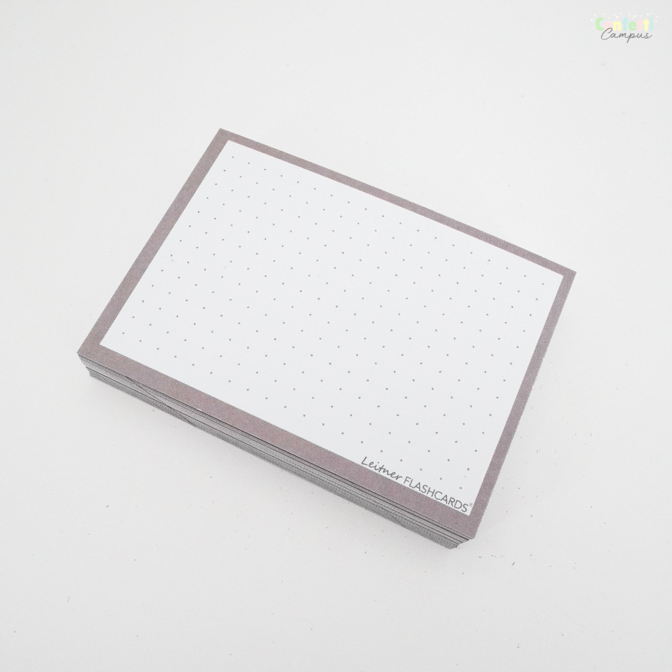 Greige Leitner Flashcards® in A7 formaat, dotted, pakje van 50 stuks. Mooie muted kleur uit de Nature collectie.