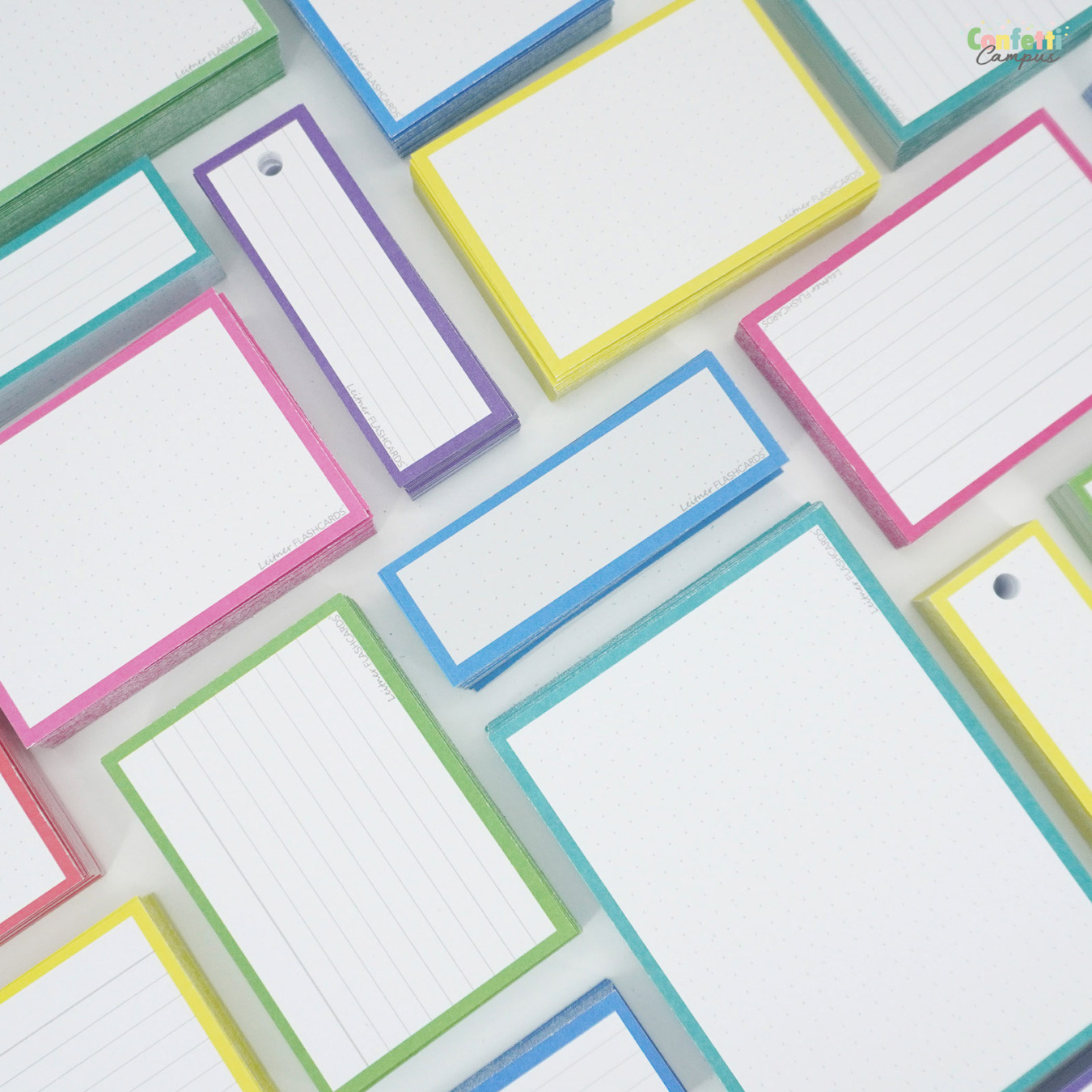 De kaartjes zijn dotted met een afstand van 5 millimeter Dit maakt deze flashcards ideaal om voor ieder vak te leren én voor creatieve doeleinden. Ze zijn gemaakt van dik, 300 grams papier, waardoor je er niets doorheen ziet en zelfs met stiften kunt schrijven zonder dat het doordrukt.