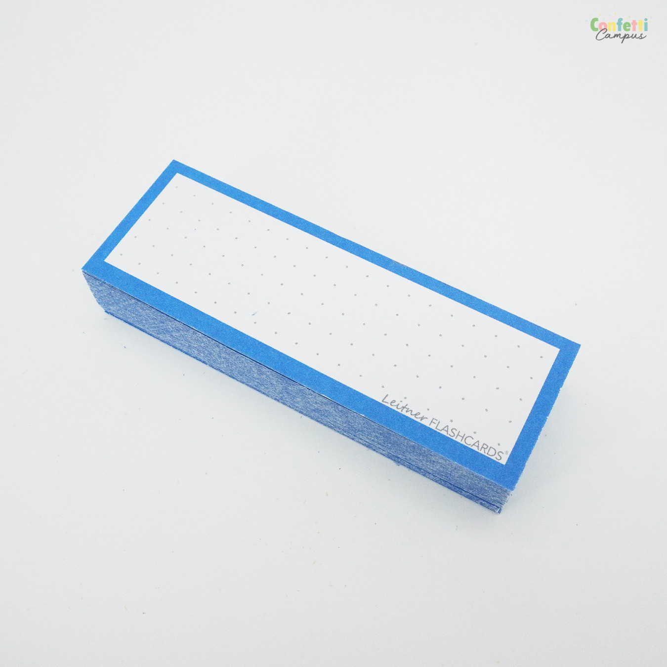 Leitner Flashcards® Half Dotted Blauw, 50 stuks. Kleine leerkaartjes voor woorden en begrippen met een blauwe rand.Â