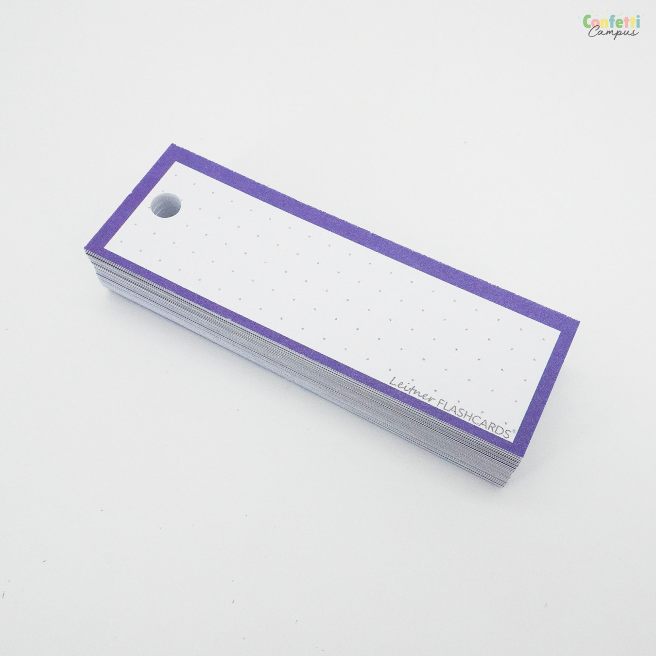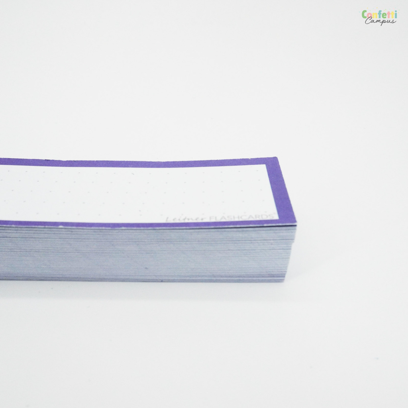 Leitner Flashcards® Half Dotted Paars, 50 stuks. Kleine leerkaartjes voor woorden en begrippen met een paarse rand.Â