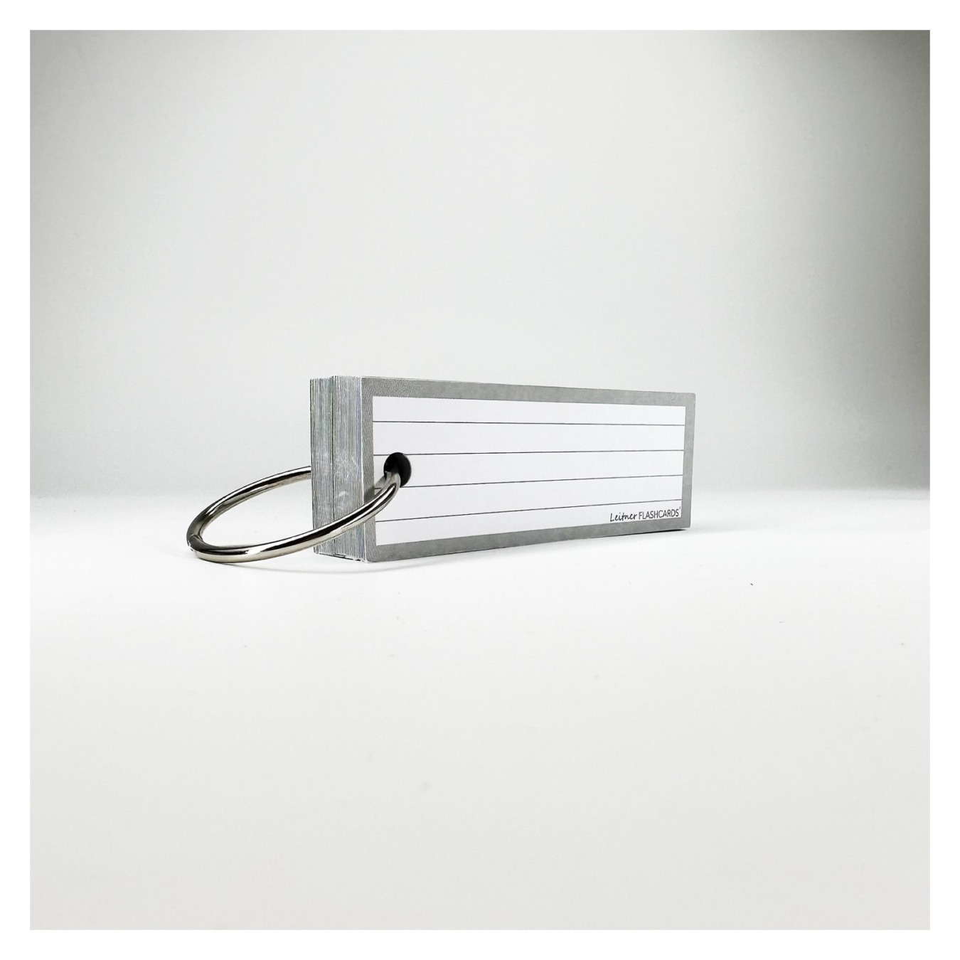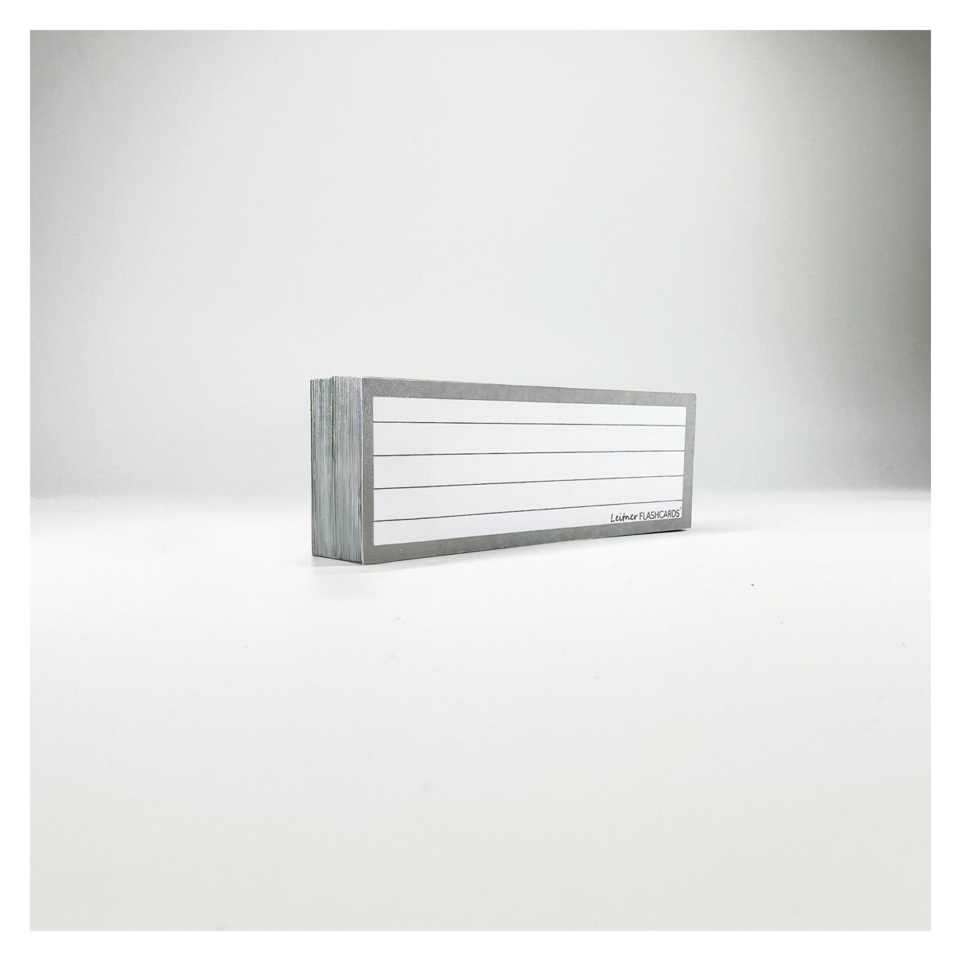 Grijze Leitner Flashcards® Half Gelinieerd, 50 stuks. Kleine leerkaartjes voor woorden en begrippen met een grijze rand.