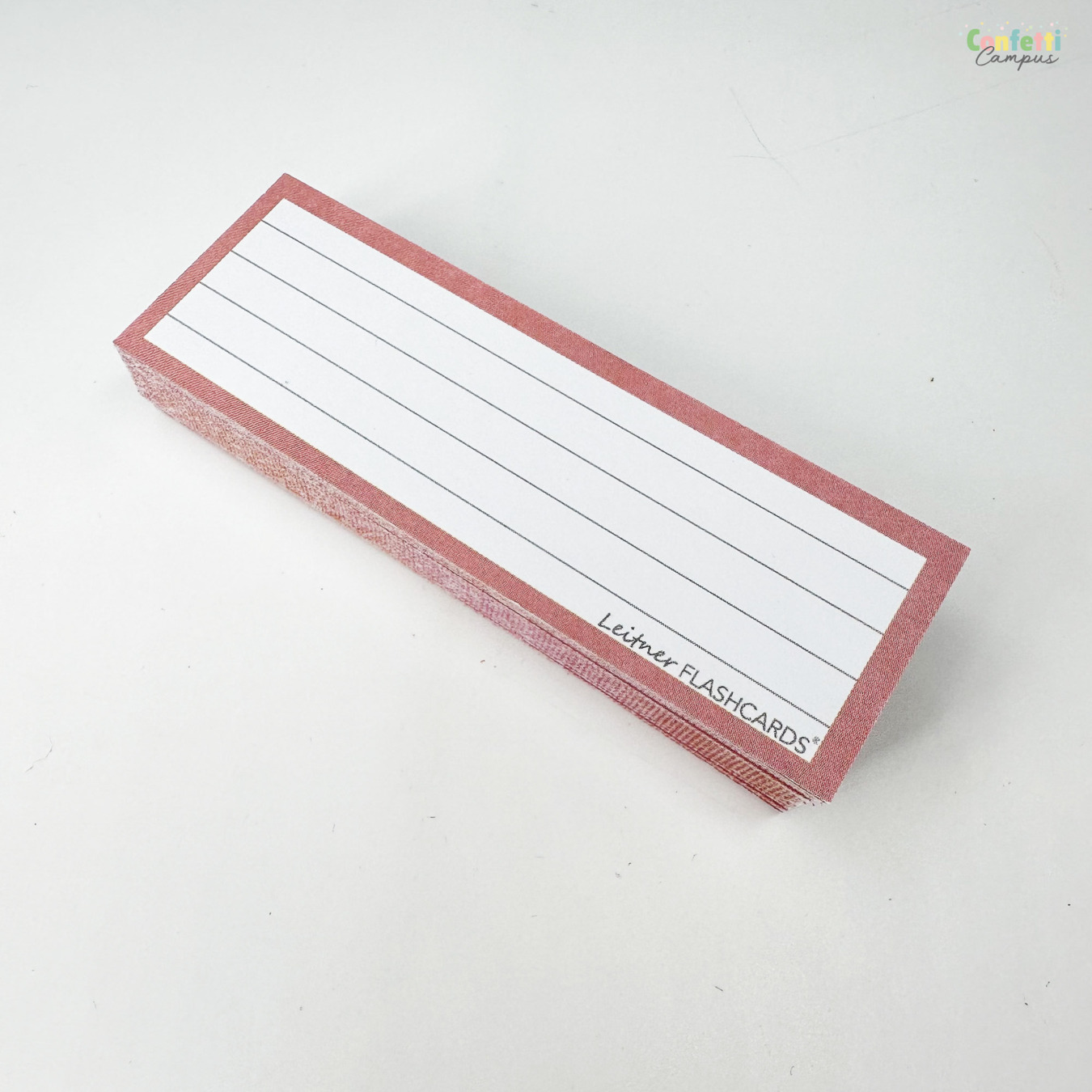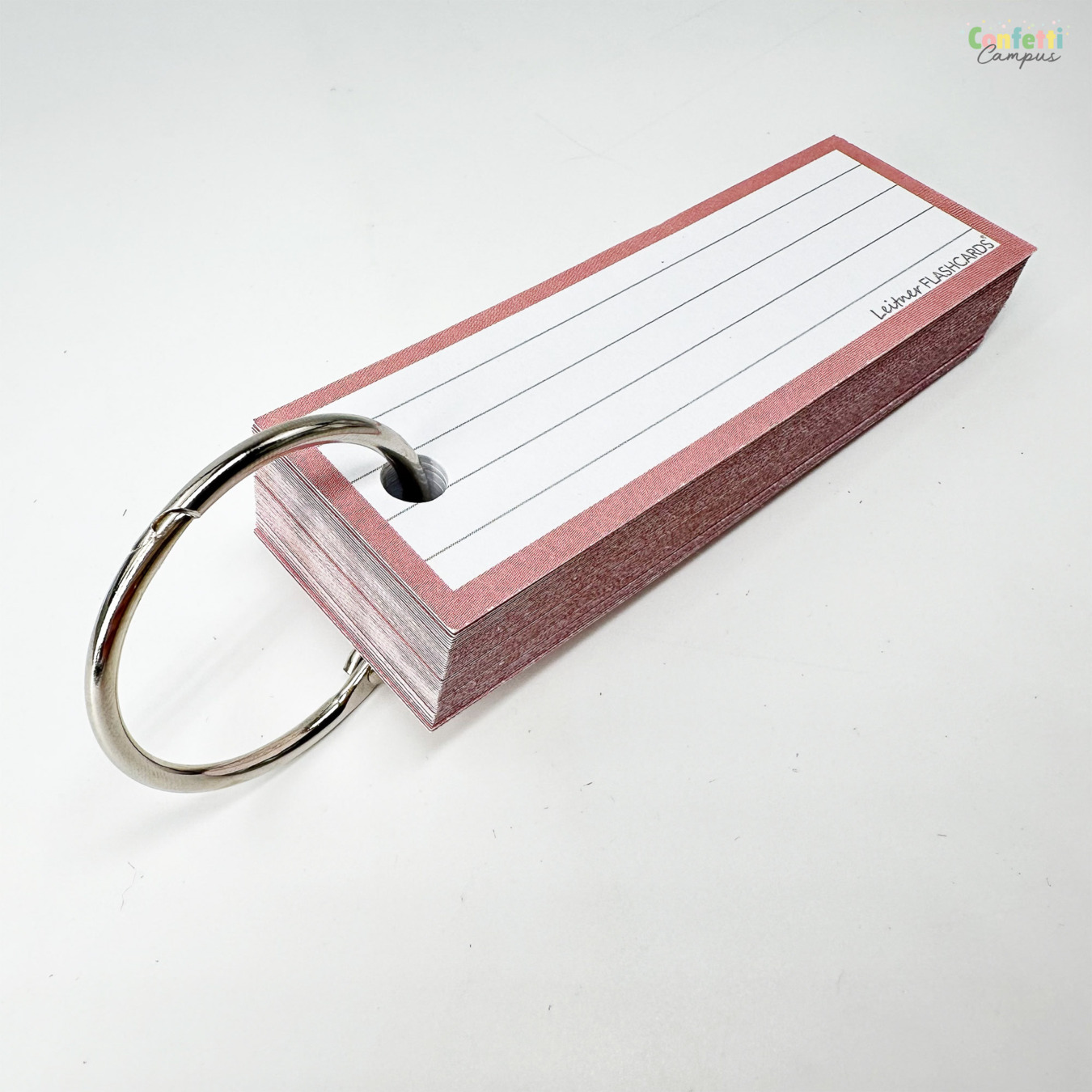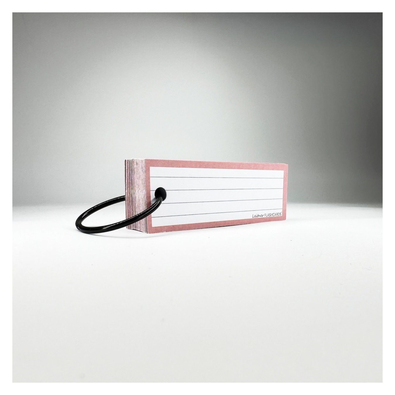 Oud-roze Leitner Flashcards® Half formaat, gelinieerd, 50 stuks. Kleine leerkaartjes voor woorden en begrippen met een subtiele oudroze rand.