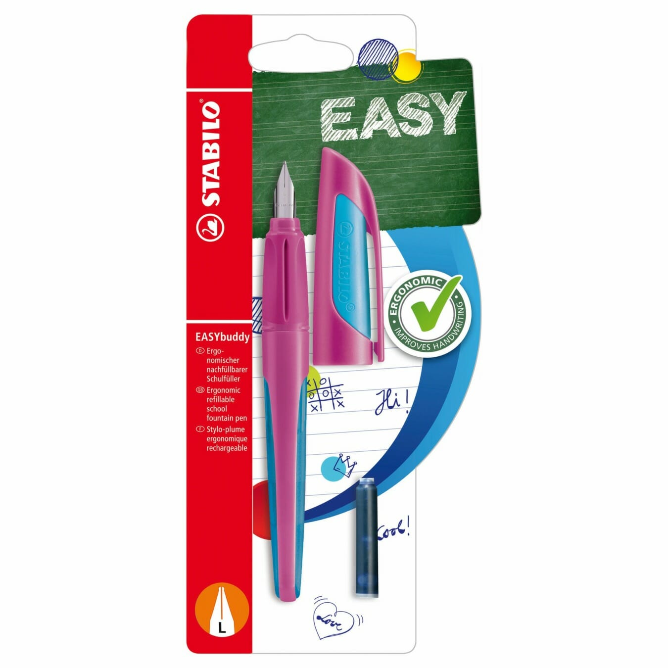 STABILO SchoolVulpen EASYbuddy FRESH EDITION in roze/lichtblauw L puntInclusief vullingVulpen voor linkshandigen